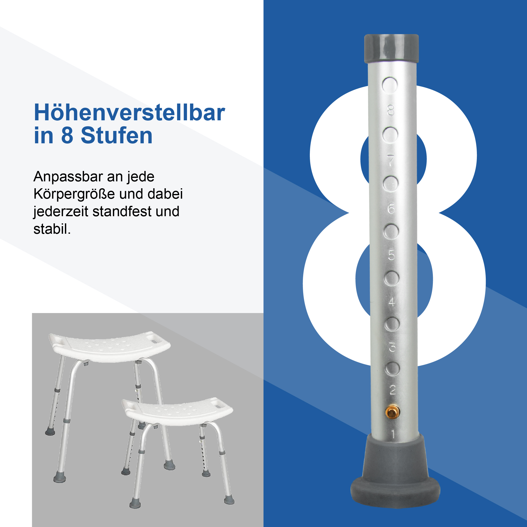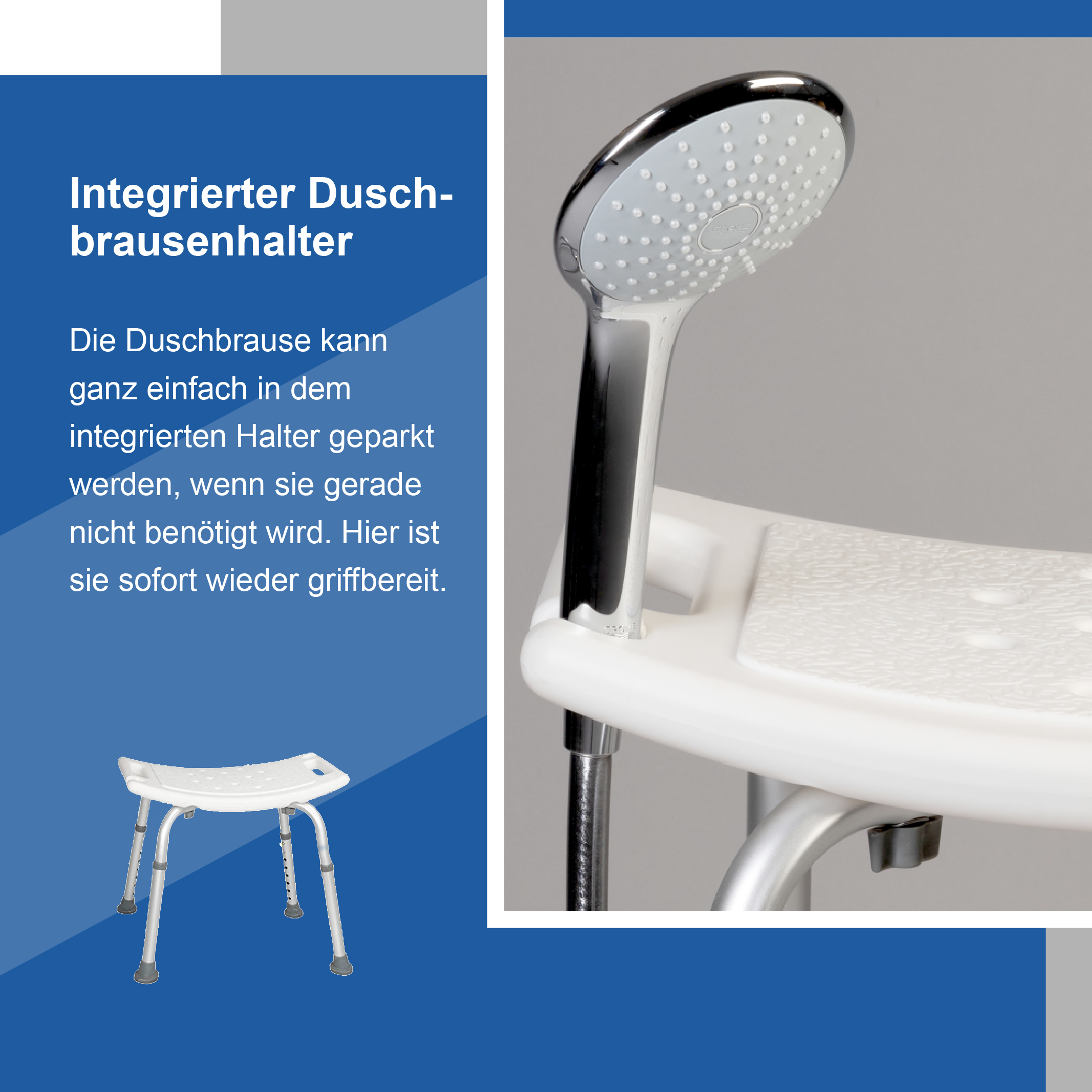 Universeller Duschhocker mit Brausenhalter - höhenverstellbar, rutschfest und stabil