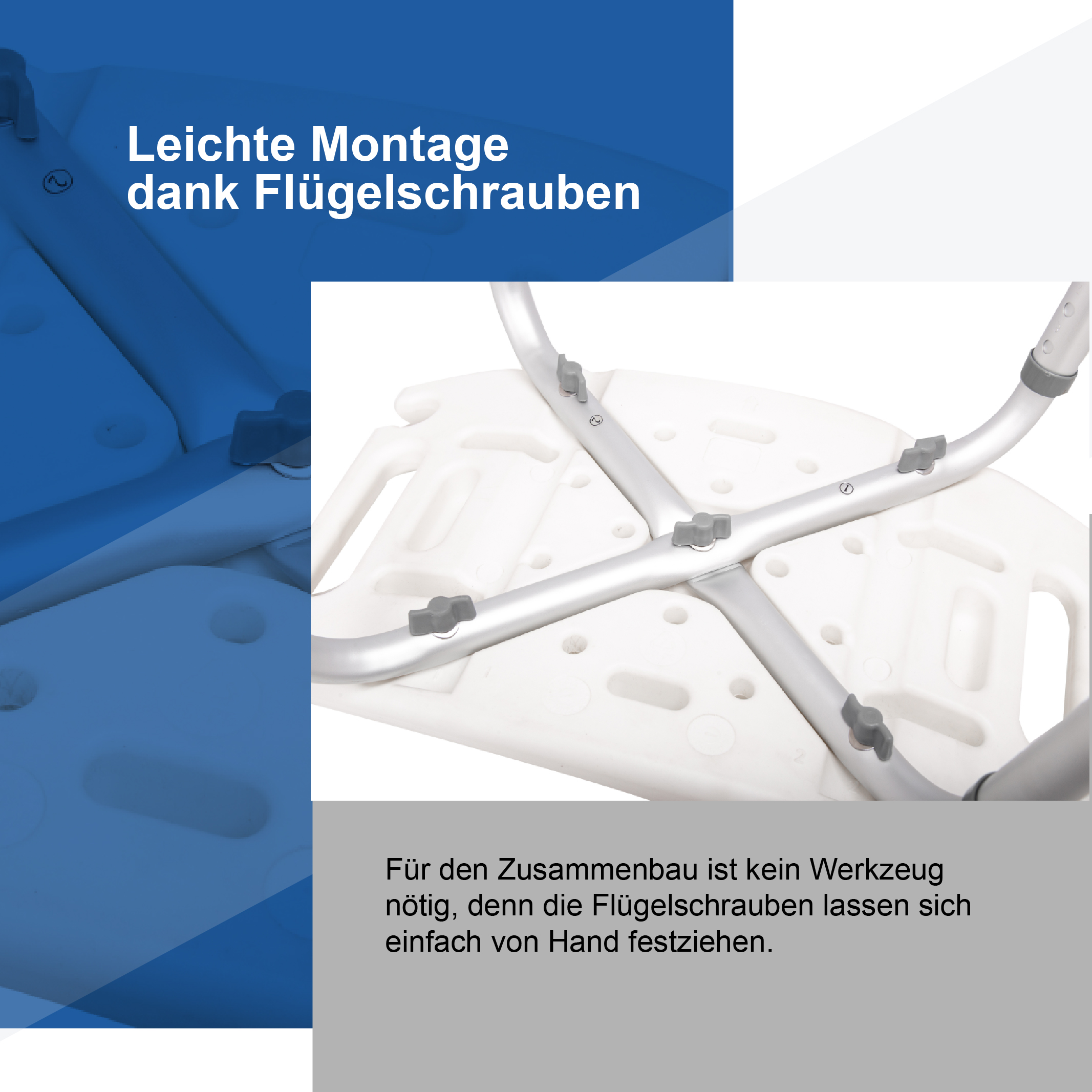 - Werkzeuglose Montage: Der Hocker lässt sich dank der Flügelschrauben einfach und schnell montieren