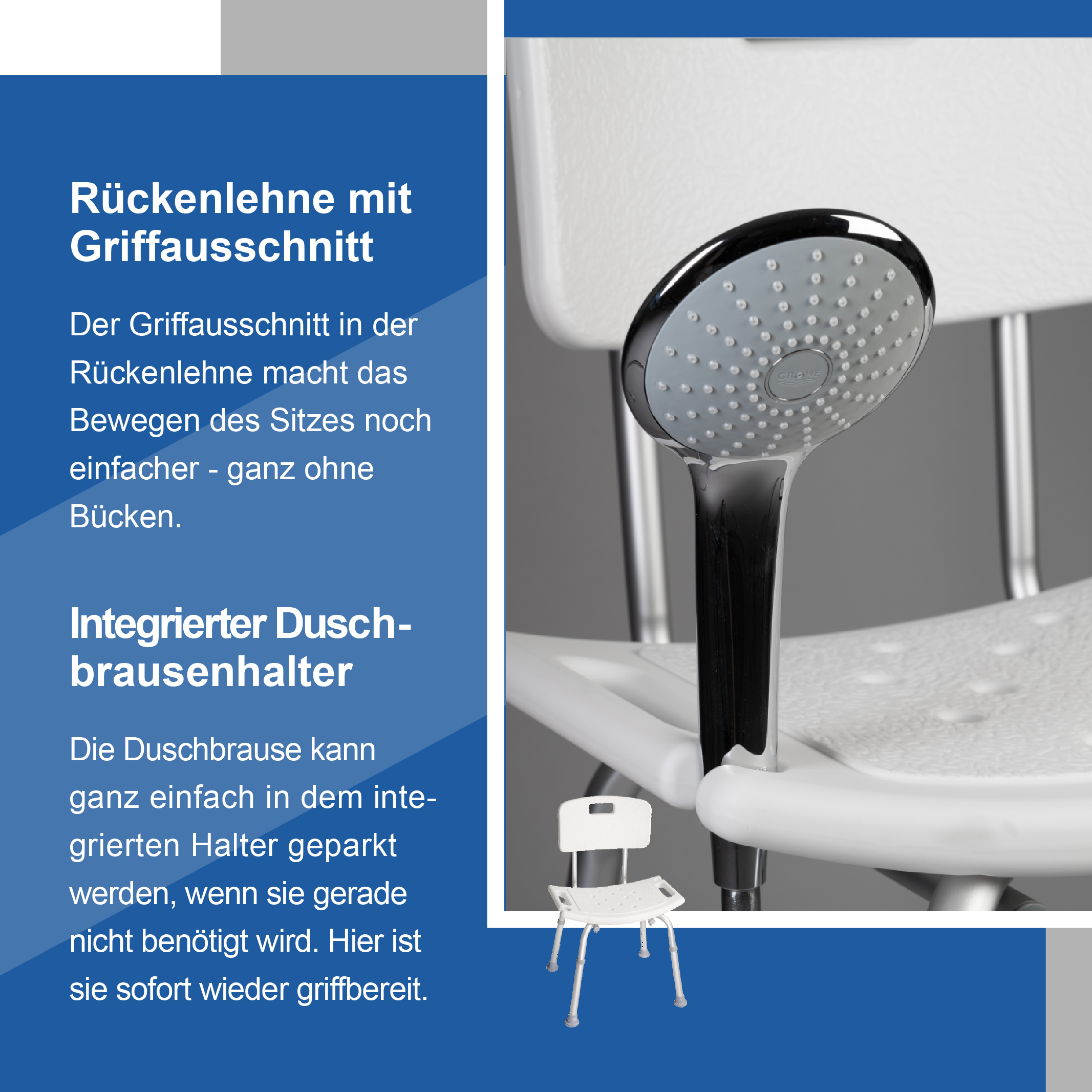 Komfortabler Duschsitz mit Lehne - höhenverstellbar, rutschfest und stabil