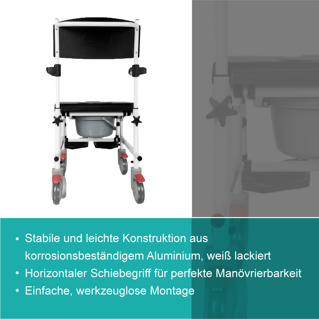 Produktinformationen "Fahrbarer Toilettenstuhl aus Aluminium"