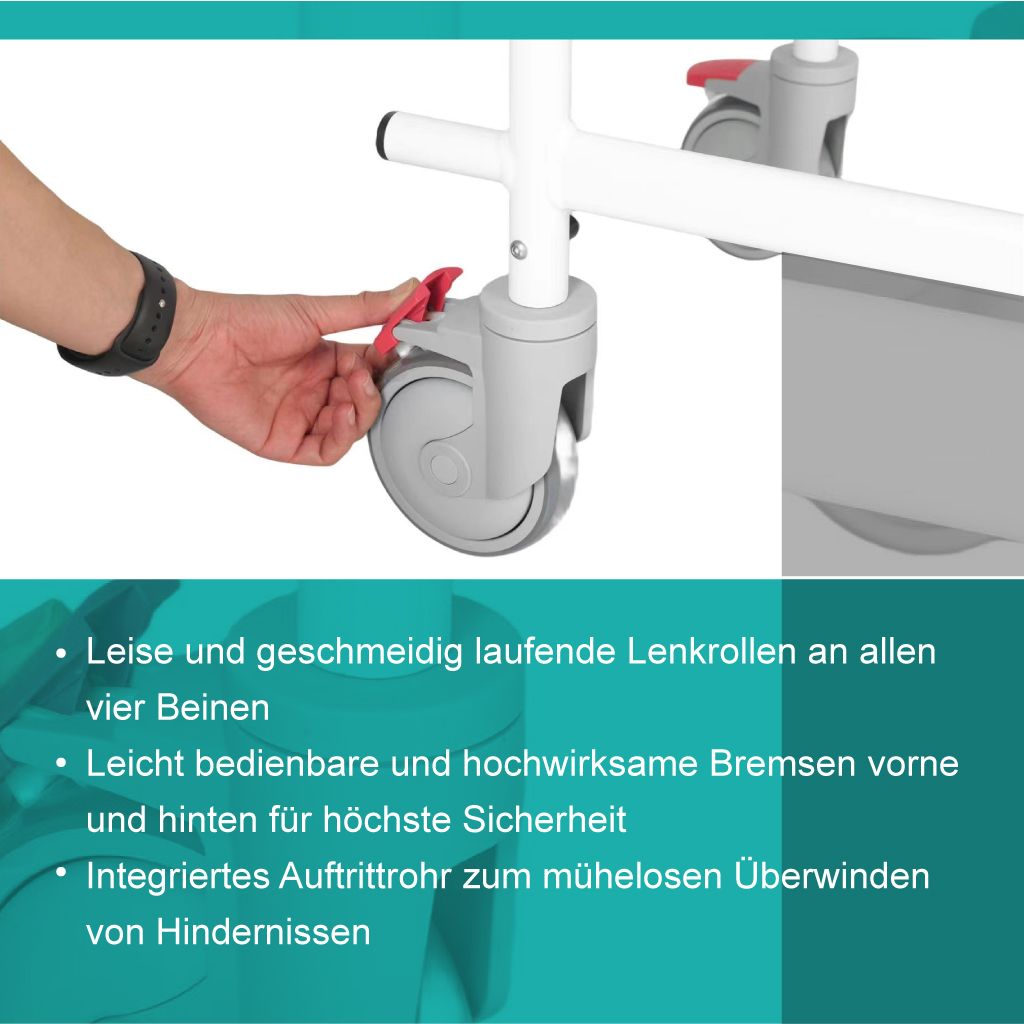 - ✅ STABILE KONSTRUKTION: Der Rahmen aus korrosionsbeständigem Aluminium und die Edelstahlschrauben gewährleisten eine robuste und langlebige Konstruktion für langfristige Nutzung, ein zuverlässiger Badezimmer-Rollstuhl mit Rollen für zu Hause.